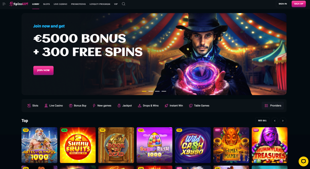SpinsUp Casino is a wise pick for newcomers to real money gambling and for regular enthusiasts with their sophisticated wishes. It has a wide range of games, featuring thrilling pokies, captivating table games, intensive live entertainment with dealers, bonuses on many occasions, a mobile version for pocket play, convenient payment services, and much more.